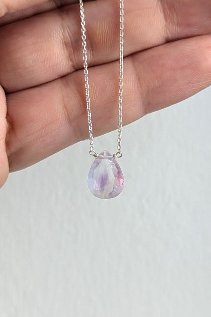 Collana con ametista glicine a forma di goccia da 13x10 mm di eccellente qualità, montato su catena diamantata in argento 925