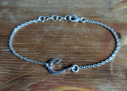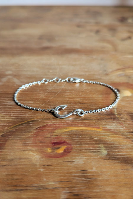 Il bracciale T'AMO di Calcagnini Gioielli è stato realizzato a mano ed è composto da un realistico amo da pesca con finitura lucida e da una bellissima catena diamantata in argento sterling.