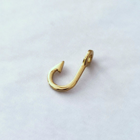 Questo pendente a forma di amo da pesca viene realizzato su ordinazione in oro giallo 9 kt (375).